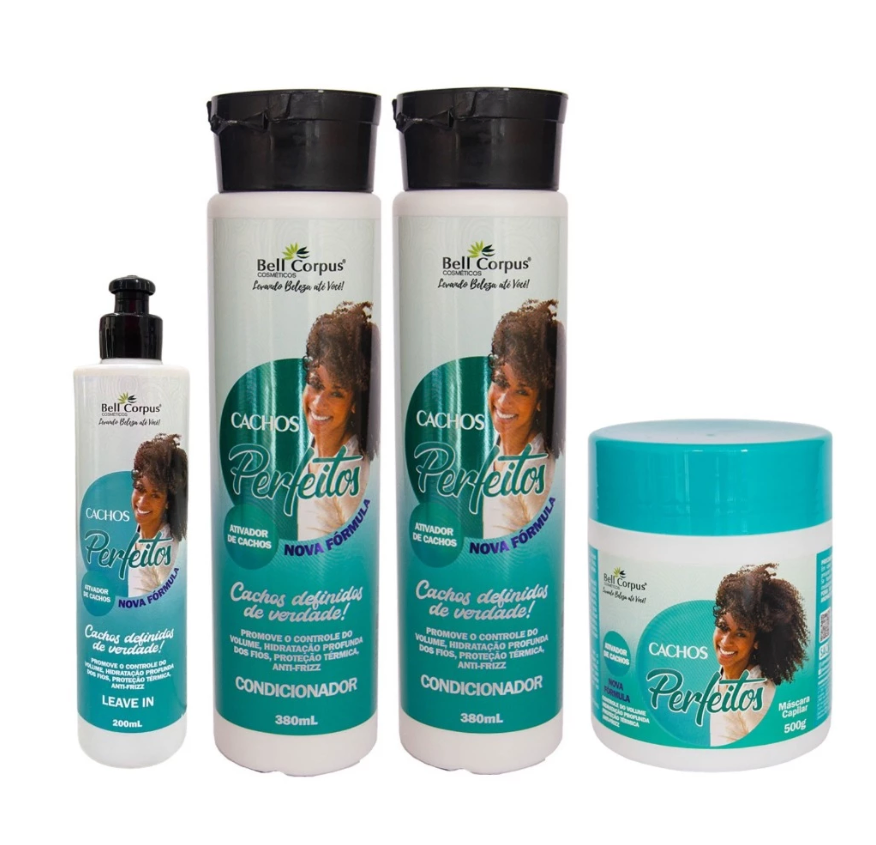 A linha capilar Cachos Perfeitos Bell Corpus está de visual novo. A linha capilar Cachos Perfeitos Bell Corpus limpa delicadamente os fios sem pesar e nem acumular resíduos nas fibras capilares. Promove o controle do volume, hidratação profunda dos fios.O Shampoo Cachos Perfeitos Bell Corpus durante a lavagem hidrata , define os cachos e reduz o volume dos cabelos.O Condicionador Cachos Perfeitos Bell Corpus possui ação anti frizz, proteção térmica, hidratação e de definição dos cachos por mais tempo.A Máscara Capilar Cachos Perfeitos Bell Corpus hidrata os cabelos cacheados, fortalece a raiz, deixando os cachos com brilho e um aspecto saudável.O Leave – In Cachos Perfeitos Bell Corpus condiciona, desembaraça e hidrata os fios, enquanto ativa a memória capilar dos cachos. Promove o efeito natural dos cachos e das ondulações. À alta carga de silicones presentes na formulação devolve o brilho e a maciez dos fios.Cachos definidos de verdade!!!