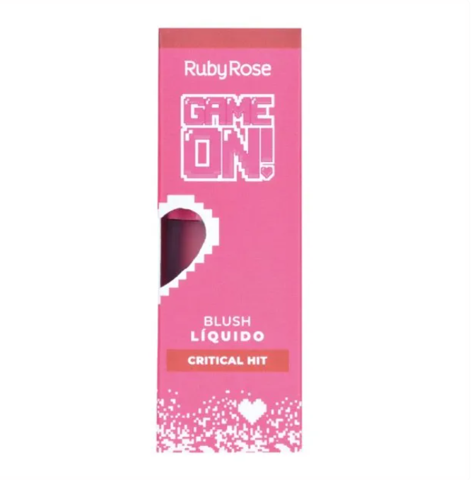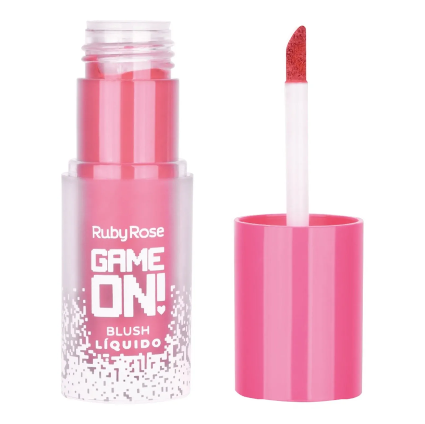 Conquiste um visual radiante com o Blush Líquido Game On da Ruby Rose!Sua textura leve e fluida desliza facilmente na pele, proporcionando um efeito corado natural e uniforme, ideal para quem busca realçar a beleza com sutileza.