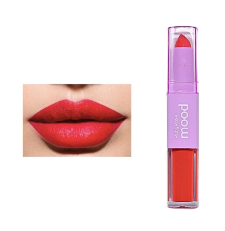 A nova linha de batons duo Mood da Ruby Rose possuem excelente cobertura, toque sedoso, um cheirinho maravilhoso e longa duração! Além de deixar os lábios lindos e confortáveis, ainda cuida dos lábios, pois possui em sua formulação a Vitamina E para auxiliar no cuidado com a pele deles.