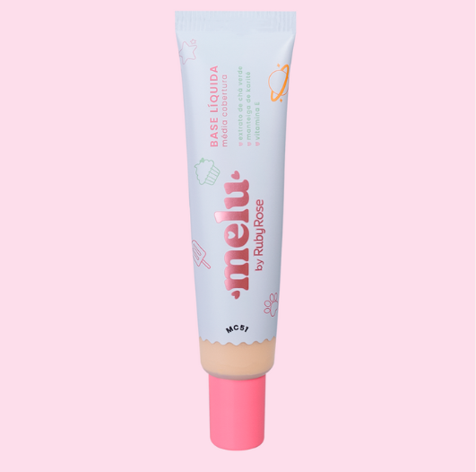 Até seu espelho vai bater palmas. A base dos sonhos acabou de sair do forno! Chegou a nova formula de Melu, mais sequinha e confortável, acabamento matte e com uma cobertura que permite construir camadas (como você preferir!). O lançamento possui o já conhecido ácido hialurônico, que garante muitas horas de hidratação.