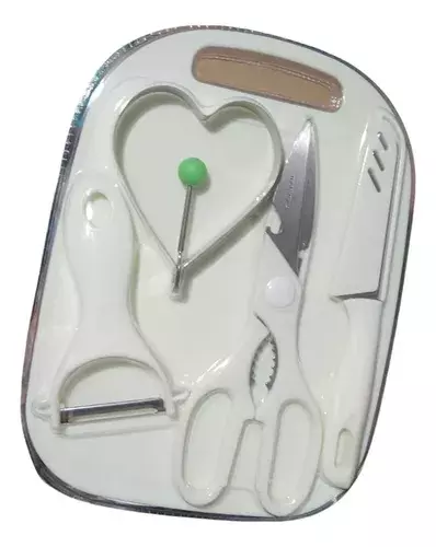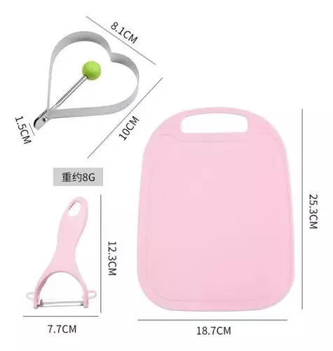 Transforme suas experiências culinárias com o Kit de Utensílios de Cozinha Multifuncional, ideal para quem busca praticidade, eficiência e um toque de elegância no dia a dia. Seja na hora de cortar, descascar, fatiar ou preparar aquele café da manhã especial, este kit completo é o aliado perfeito para facilitar todas as suas tarefas na cozinha!O que inclui esse kit incrível?Faca Multiuso: Com lâmina afiada e design ergonômico, esta faca é perfeita para cortar legumes, frutas e carnes com precisão. Acompanha capa protetora, garantindo segurança e durabilidade.Descascador de Legumes: Feito para descascar de forma prática e rápida, sem desperdiçar nada! Ideal para batatas, cenouras, pepinos e muitos outros alimentos.Tesoura de Cozinha: Multiuso e resistente, é perfeita para cortar desde embalagens até ervas e carnes. Com cabo ergonômico e lâminas afiadas, ela facilita o preparo dos alimentos e agiliza suas receitas.Tábua de Corte Compacta: O suporte ideal para todos os seus cortes. Feita de material resistente e fácil de limpar, protege suas facas e facilita o manuseio de alimentos.Molde para Ovo Coração: Surpreenda com um toque de carinho! Com este molde, você pode preparar ovos e panquecas em formato de coração, tornando suas refeições ainda mais especiais e divertidas.Benefícios do Kit de Utensílios de Cozinha:Organização e Praticidade: Todas as ferramentas que você precisa em um só conjunto, mantendo sua cozinha organizada e funcional.Design Moderno: Com um visual clean e sofisticado, este kit traz mais charme e estilo para sua bancada.Durabilidade e Qualidade: Feito com materiais de alta resistência, garantindo um uso prolongado e eficiente.Fácil de Limpar: Todos os itens são projetados para facilitar a limpeza e a manutenção, economizando seu tempo.Por que você precisa desse Kit?Com o Kit de Utensílios de Cozinha Multifuncional, suas tarefas na cozinha se tornam mais rápidas e simples. Ideal para quem quer impressionar na apresentação dos pratos e facilitar o preparo das refeições, seja para um café da manhã romântico, um almoço em família ou um jantar especial com amigos.Dica Extra: Use o molde de coração para preparar panquecas, ovos ou até mesmo hambúrgueres no formato mais fofo e surpreenda quem você ama!Não perca mais tempo sofrendo com utensílios antigos e complicados. Compre agora o seu Kit de Utensílios de Cozinha Multifuncional e eleve o nível das suas receitas. Aproveite a oferta especial e comece a transformar a sua rotina na cozinha com mais praticidade, estilo e criatividade!Tábua - 25cm x 8,5cmTesoura - 21cm x 7,8cmFaca com Protetor - 19,5cm x 2cmDescascador - 13cm x 7,5cm