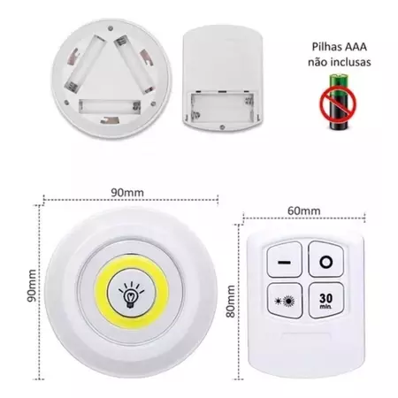 Alimentado por pilhas AAA não incluídas para instalação sem fio. Ideal para cozinha, armário, armário, balcão, prateleira, garagem, porão ou locais escuros semelhantes, onde você pode precisar de alguma iluminação forte por alguns minutos de vez em quando. Características: Controle de 2 vias: O controle remoto IR permite que você ajuste o brilho em 2 níveis e controle de tempo para desligar a luz em 30 minutos sem fio. Você também pode ligar desligar a luz do disco, tocando no interruptor na lente das luzes. Instalação Fácil: Use o adesivo de dupla face para fixar a luz do disco em qualquer lugar que você queira iluminar. Bateria operada: Alimentado por pilhas AAA não incluídas para instalação sem fio. Ideal para cozinha, armário, armário, balcão, prateleira, garagem, porão ou locais escuros semelhantes, onde você pode precisar de alguma iluminação forte por alguns minutos de vez em quando.