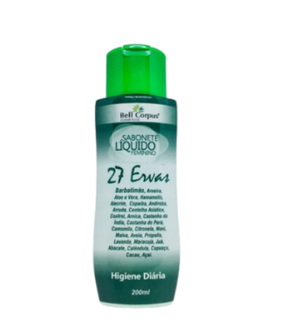 O sabonete líquido feminino bell corpus 27 ervas possui uma fórmula suave com a interação de 27 ervas que higieniza proporcionando agradável sensação de bem-estar e refrescância.