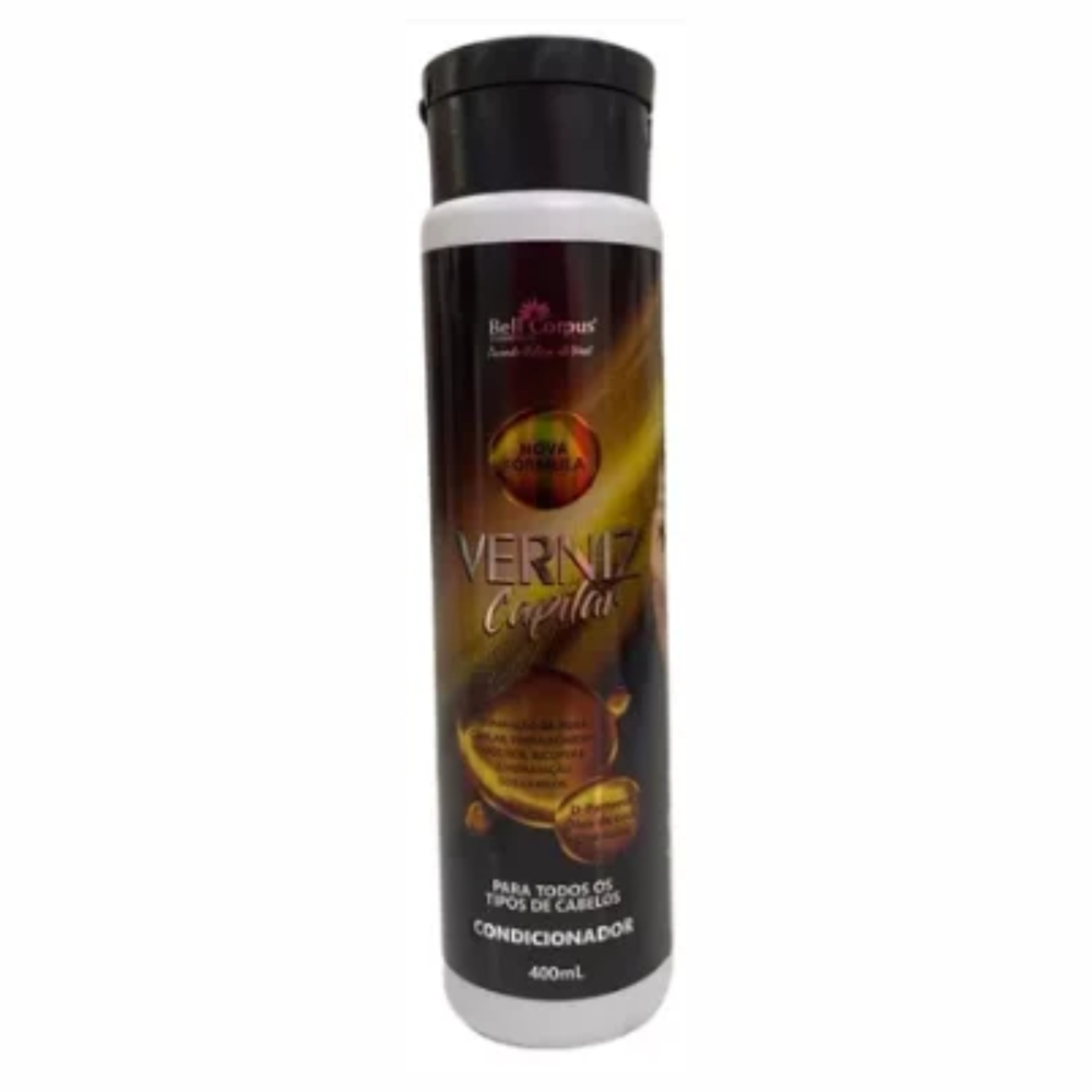 O banho de verniz Bell Corpus é um tratamento desenvolvido para devolver a naturalidade dos cabelos secos, opacos, processos de coloração e outros tratamentos com químicas. Sua fórmula é enriquecida com D’pantenol, Queratina e Óleo de coco, que juntos restauram a barreira lipídica dos fios proporcionando hidratação, nutrição, maciez e brilho intenso.