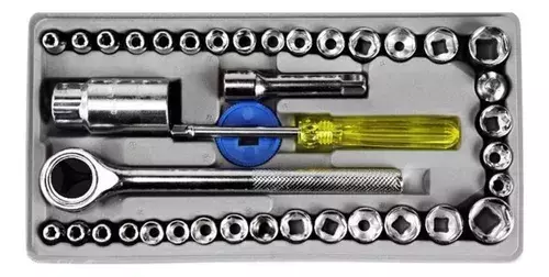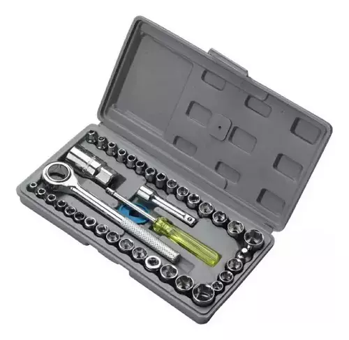 Kit essencial com 40 peças úteis para manutenções profissionais, domésticos, automotivo, moto, bicicletas, reparos em geral.Desenvolvido com o principal objetivo de facilitar as manutenções e reparos a serem feitos. Ideal para apertar e desapertar porcas e parafusos, alcance locais que chaves tradicionais não atingem, dando mais versatilidade ao seu trabalho.O sistema de liberação rápida dos soquetes e o mecanismo reversível da catraca facilitam a utilização.O Kit possui soquetes em milímetros e polegadas. Assim, quer esteja consertando uma máquina de lavar ou montando móveis pré-fabricados, você terá o soquete do tamanho certo para trabalhar.As chaves de aperto possuem aberturas das bocas verificadas com gabaritos calibrados, o que garante seu perfeito acoplamento nos parafusos.