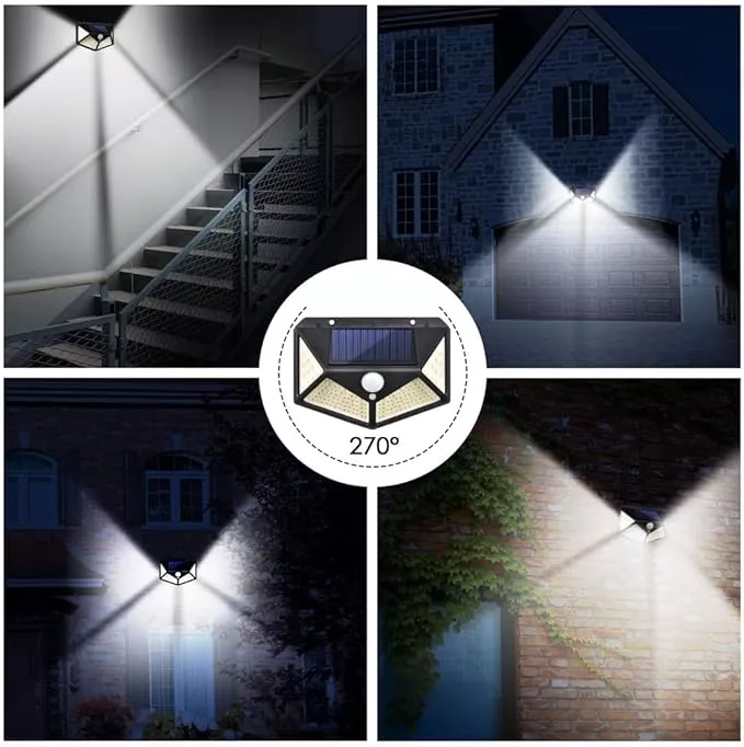 Luminária solar com detector de movimento e acendimento automático acionada pela intensidade de luz ambiente.Com autonomia de até 12 horas, grande intensidade de luz com 100 leds.Economia, praticidade e segurança em um mesmo produto.