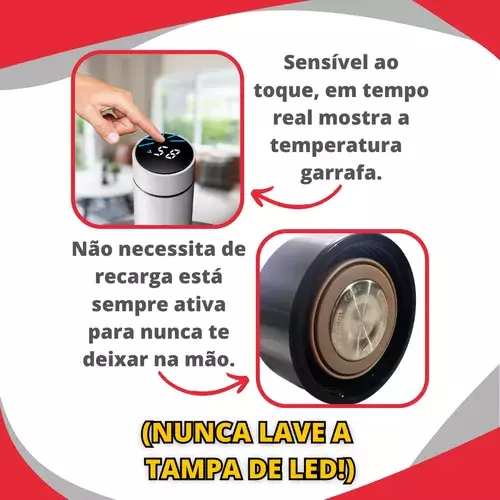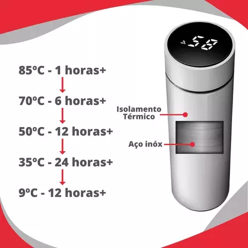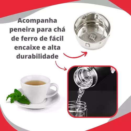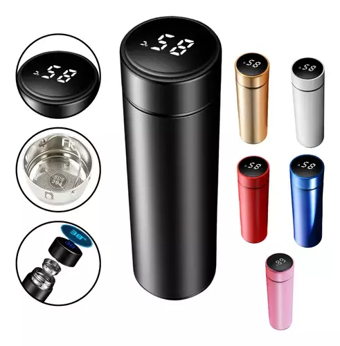 Garrafa Térmica Inox 500 ml c/ Filtro e Medidor Temperatura