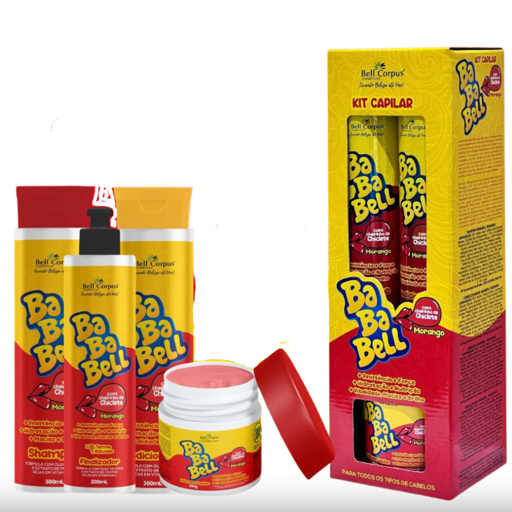 A linha Bababell Bell Corpus foi desenvolvida com um cheirinho de chiclete que relembra a infância para promover o bem estar a quem usa o produto. Uma nostalgia deliciosa para cuidar dos seus cabelos. O kit possui uma fórmula tecnológica e inovadora, rica em extrato de frutas, óleo de coco, queratina e aminoácidos da quinoa. Promove a restauração da fibra capilar o que aumenta a resistência dos fios. deixando os cabelos hidratados, nutridos, macios, brilhosos e com muita vitalidade.