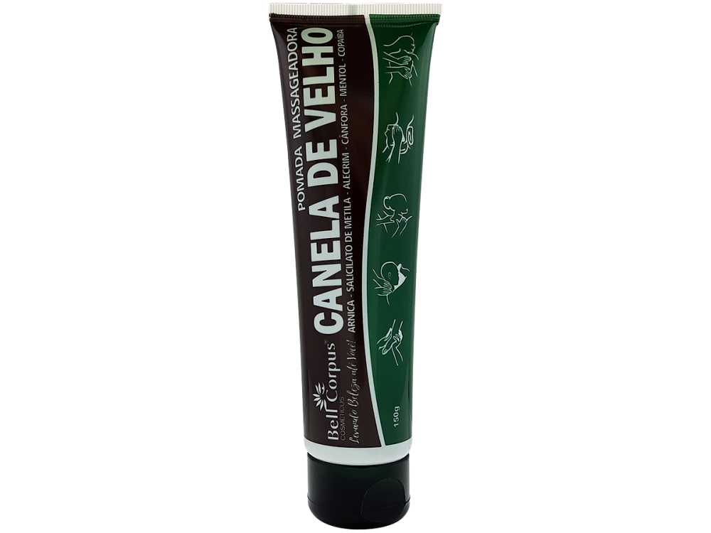 Acabe com as dores de uma vez por todas. A famosa Pomada Massageadora Canela de velho combate tensões musculares e dores localizadas de forma rápida e eficaz.Dores musculares são muito comuns, elas podem acontecer em qualquer músculo do corpo e por diversos motivos como, exercícios, pancadas, esportes ou até mesmo por tensão muscular, causando muito desconforto e pode atrapalhar as tarefas do dia a diaA Pomada Canela de Velho Bell Corpus tem uma formulação exclusiva que é enriquecida com Arnica, Salicilato de Metila, Alecrim, Cânfora, Mentol e Copaíba. Todos esses componentes combatem as dores diretamente, trazendo alivio e refrescancia imediataO Canela de Velho da Bell Corpus é uma excelente pomada massageador que auxilia no tratamento das dores nas articulações, proporcionando auxílio e alívio nas dores trazendo benefício contra problemas como artrite, artrose, dores nas articulações, entre outros malesNão seja amigo da dor, use a Pomada Canela de Velho da Bell CorpusApós o uso do Pomada Canela de Velho Bell Corpus você irá sentir uma refrescância e uma sensação relaxante e alivio das doresPORMADA MASSAGEADORA CANELA DE VELHO BELL CORPUS ACOMPANHA:Pomada Massageadora Canela de Velho – 150g- Combate artrite e artrose- Alivia as dores nas articulações- Refrescancia imediata- Promove uma textura sedosa e um toque aveludado na peleResultados- Combate as dores na articulação- Fácil aplicação- Melhora as circulações- Alivio imediatoDICA DO PROFISSIONAL, FÁCIL APLICAÇÃO1° Aplicar o produto na área do corpo desejada através de movimentos circulares até a completa absorção