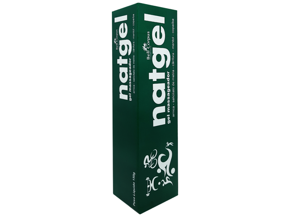 Livre-se de dores pelo corpo com o uso do Gel Massageador NatGel, o Gel mais forte do Brasil.A dor muscular está mais frequentemente relacionada a tensão no músculo, como exercícios, lesão muscular ou muitas vezes em casa ou no trabalho. Toda dor gera um incômodo, e caso não seja tratada pode acarretar em mais problemas.O Gel Massageador NatGel Bell Corpus é enriquecido com extratos especiais de arnica, salicilato de metila, cânfora, mentol e copaíba e tem a sua eficácia comprovadaTrata todas as dores de forma rápida, pois é absorvida pela pele rapidamente, dando início de imediato ao tratamentoPromove aquecimento na área da aplicação, deixando uma agradável sensação de calor, melhora consideravelmente a flexibilidade dos músculos devido a sua composição rica em ingredientes que melhoram a circulação periférica e promovem o relaxamento e o conforto corporal. Também ajuda a combater aquela terrível dor de cabeçaDermatologicamente Testado e aprovado, o Gel Massageador NatGel Bell Corpus é recomendado por Fisioterapeuta e Profissional de Ed. FísicaDê um fim de uma vez por toda em suas dores com o Gel Massageador NatGel Bell Corpus e tenha um dia mais produtivo e sem dores!OBS: NÃO UTILIZAR DURANTE A GRAVIDEZApós o uso do Gel Massageador NatGel Bell Corpus você irá sentir alivio nas tensões e dores musculares, facilitará a sua circulação sanguínea no local e trará uma excelente sensação de recrescência e alivio imediatoO GEL MASSAGEADOR NATGEL BELL CORPUS ACOMPANHA:Gel Massageador NatGel – 150g- Combate as dores musculares e a dor de cabeça- Melhora a circulação sanguínea da região aplicada- Traz a sensação de recrescência e alivio imediato- Absorção rápidaRESULTADOS- Alivia as dores musculares- Alivia a dor de cabeça- Melhora a circulação sanguínea- Sensação de alivio e recrescênciaDICA DO PROFISSIONAL, FÁCIL APLICAÇÃO1° Aplique na local desejado e massageie até a total absorção do Gel Massageador NatGel Bell Corpus na pele