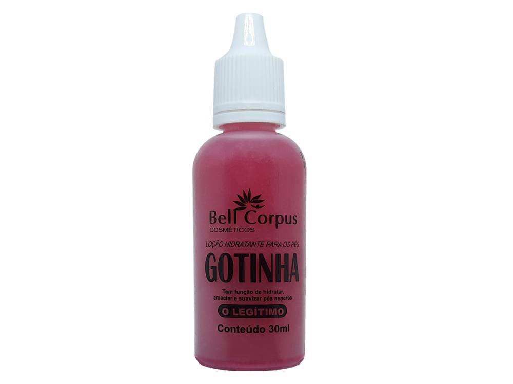 Gotinha da Bell Corpus, a legítima loção hidratante para os pésPara muitas pessoas, a pele rachada aparece ou piora durante o inverno, quando o ar seco pode causar secura nos pés.Além da falta de hidratação, andar descalço ou com sapatos abertos também leva ao ressecamento e deixa a pele mais espessa. Pensando nisso a Bel Corpus lançou a Loção Hidratante GotinhaA sua formula foi desenvolvida para acabar completamente com as rachaduras dos pés, eliminando a camada grossa, deixando sua pele macia e aveludadaTem a função de hidratar amaciar e suavizar os pés ásperos, também elimina calos, rachaduras nos calcanhares, cravos e asperezas dos pés, rachaduras nos dedosAcaba completamente com as rachaduras dos pés, eliminando a camada grossa, deixando sua pele macia e aveludadaApós o uso da Loção Hidratante Gotinha Milagrosa, você vai notar que os seus pés e estarão mais hidratadas, sem rachaduras, macios e com um toque aveludadoLOÇÃO HIDRATANTE GOTINHA MILAGROSA BELL CORPUS ACOMPANHA:Gotinha Milagrosa -30 mL- Elimina calos, rachaduras nos calcanhares- Remove cravos e asperezas dos pés e- Combate rachaduras nos dedos- Pés hidratadasRESULTADOS- Hidratação para os pés- Combate rachaduras, pés ásperos e também elimina calos- Suavizar os pés ásperos- Recuperar ressecadasDICA DO PROFISSIONAL, FÁCIL APLICAÇÃO1° Aplicar a Loção Hidratante para os Pés, principalmente nas áreas mais ressecadas, friccionando bem todas as noites, antes de dormir
