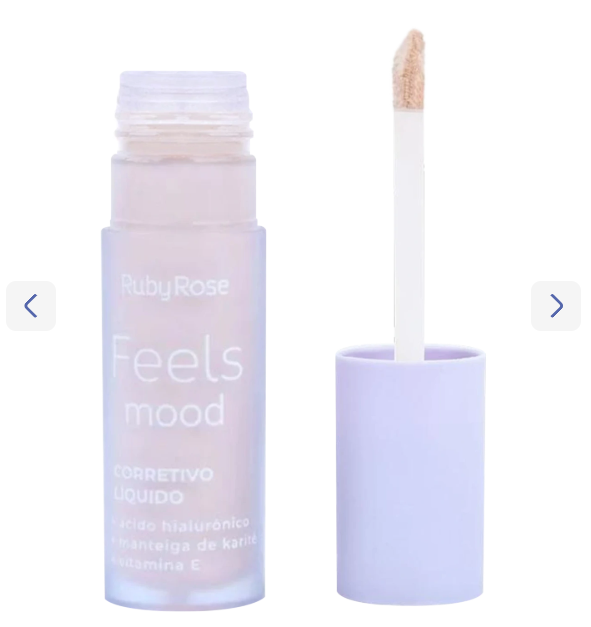 Corretivo líquido.Ruby Rose Feels Moodpossui alta cobertura, é fácil de espalhar e excelente para camuflar olheiras e marcas.