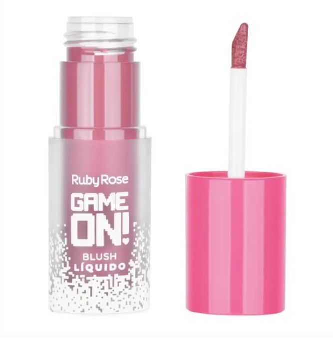 Conquiste um visual radiante com o Blush Líquido Game On da Ruby Rose!Sua textura leve e fluida desliza facilmente na pele, proporcionando um efeito corado natural e uniforme, ideal para quem busca realçar a beleza com sutileza.