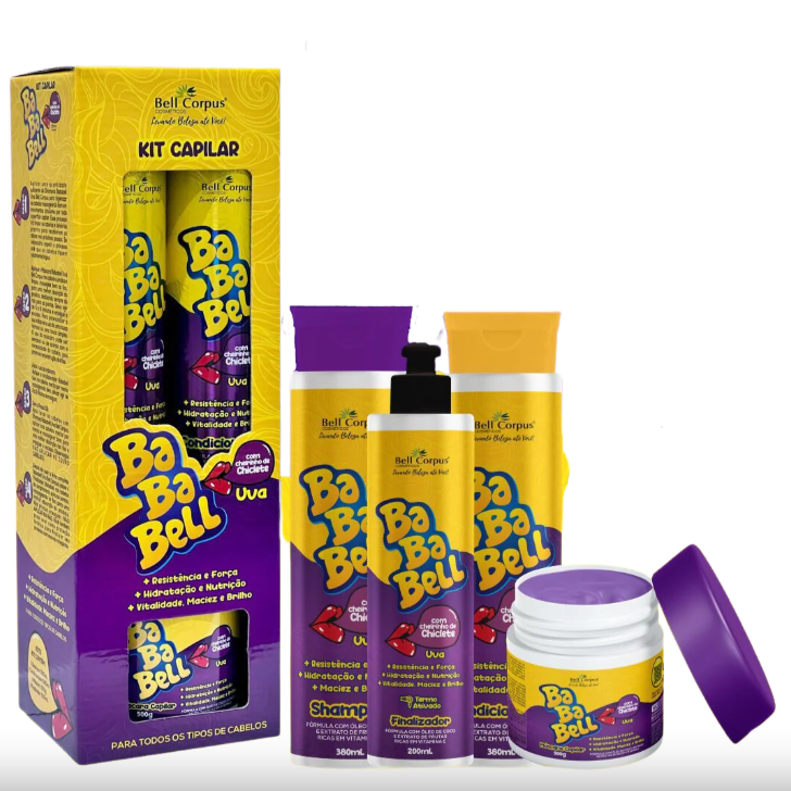A linha Bababell Bell Corpus foi desenvolvida com um cheirinho de chiclete que relembra a infância para promover o bem estar a quem usa o produto. Uma nostalgia deliciosa para cuidar dos seus cabelos. O kit possui uma fórmula tecnológica e inovadora, rica em extrato de frutas, óleo de coco, queratina e aminoácidos da quinoa. Promove a restauração da fibra capilar o que aumenta a resistência dos fios. deixando os cabelos hidratados, nutridos, macios, brilhosos e com muita vitalidade.