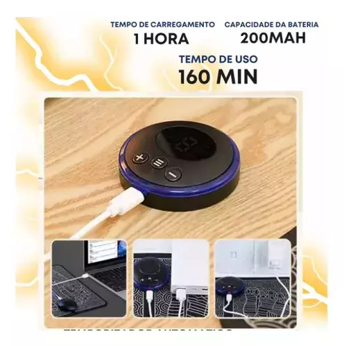 O Massageador Portátil Corporal Recarregável EMS é a solução definitiva para suas dores musculares e necessidades de relaxamento. Este não é apenas um massageador, é a chave para uma vida mais saudável, livre de tensões e dores crônicas que podem prejudicar seu bem-estar.Se você passa longos períodos sentado, praticando atividades físicas intensas ou simplesmente busca um maior conforto no final do dia, este massageador é a solução perfeita para você. Ele atua diretamente na sua musculatura, aliviando dores e auxiliando na recuperação muscular.Este massageador proporciona melhora no tônus e firmeza da musculatura. Com músculos mais firmes e tonificados, sem precisar sair de casa.Ele funciona através da tecnologia EMS (Eletroestimulação Muscular), promovendo uma sensação de relaxamento e bem-estar.Este massageador oferece 8 modalidades de estimulação e 19 intensidades diferentes, permitindo que você personalize o uso de acordo com suas necessidades e preferências.Ele desliga automaticamente após 30 segundos sem contato com a pele, garantindo maior segurança e economia de bateria.Para cuidar do seu massageador: evite armazená-lo em ambientes com altas ou baixas temperaturas e umidade, e limpe-o com pano úmido e material neutro quando necessário. O massageador vem acompanhado de uma base adesiva, gerador de estímulos, cabo USB e um manual de instruções.ESPECIFICAÇÕES TÉCNICAS:- 8 modalidades- 19 intensidades- Desliga automaticamente após 30 segundos sem contato com a pele- Voltagem: 3,7V- Saída máxima: 35maA- Frequência: 1-100Hz- Capacidade da bateria: 200mAH