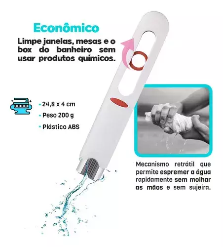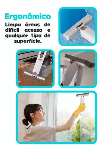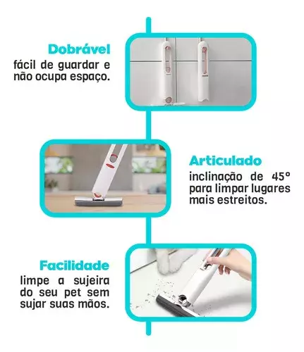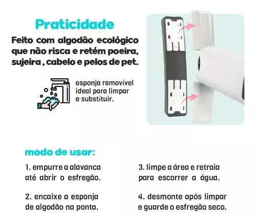 Possui um sistema de absorção que coleta e retém partículas como poeira, cabelos, fragmentos alimentares e manchas.Informações Técnicas:- Ponta Dobrável: auxilia no enxágue de líquidos- Material do cabo: Plástico