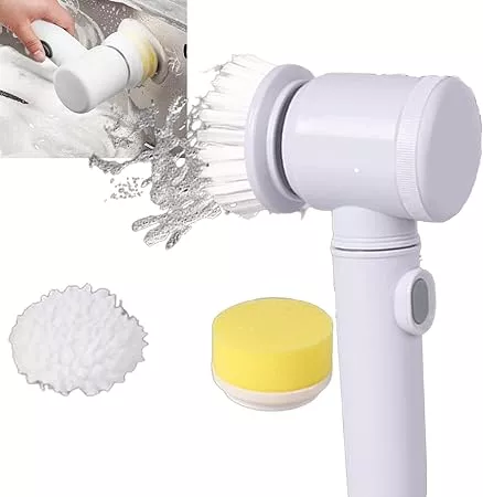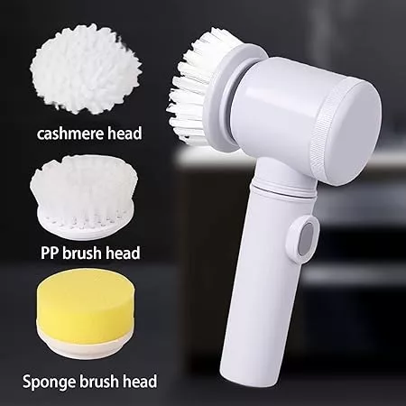 Punho de plástico abs escova de lavagem elétrica destacável com 3 cabeças multiuso funcional com 3 tipos de cabeças de escova macia é adequadas para sofás, tapetes limpar cozinha, banheira, azulejos e assim por diante Elétrica automática funciona rápido economia de tempo para fazer a limpeza com mais eficiência e agilidade conveniente para limpeza frequente.