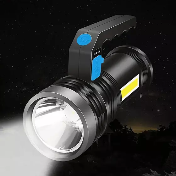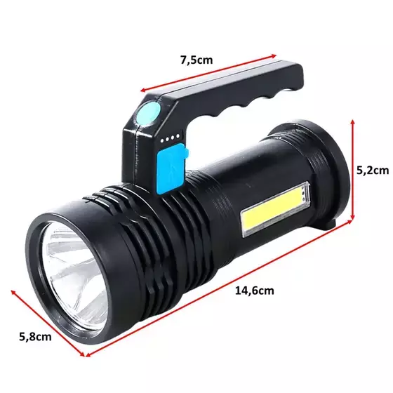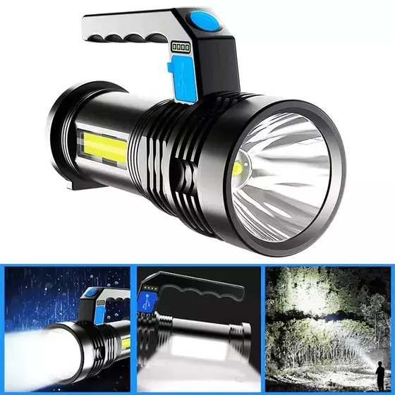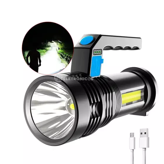 A lanterna é uma ferramenta essencial para qualquer aventura ao ar livre. mais escuros. O LED OSL + COB de alto brilho garante uma iluminação eficaz. ideal para casa carro trilha e muito mais possui 4 funções de luminosidade sendo elas Forte, médio, Strobo e COB luz lateral, trazendo um design completo, inovador e resistente a respingos de água, além de ser recarregável.