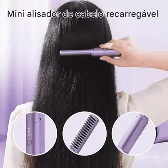 Mini Pente Alisador de Cabelo Sem Fio Portátil