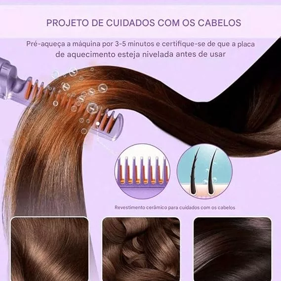 A temperatura ajustável, de 150°C a 180°C, permite a personalização do alisamento conforme o tipo de cabelo, garantindo resultados rápidos e eficazes. Fabricado com material plástico ABS e cerâmica, o Mini Pente Alisador é resistente e seguro, proporcionando o cuidado ideal para seus fios. Prático, eficiente e com desempenho de salão, este pente é um must-have para qualquer rotina de beleza.