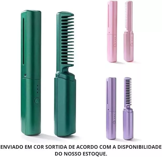 Mini Pente Alisador de Cabelo Sem Fio Recarregável Anti-Frizz Portátil, Escova Elétrica Compacta, Design Leve, Aquecimento Rápido, Temperatura Ajustável, Ideal para Viagens e Uso Diário O Mini Pente Alisador de Cabelos Recarregável é a solução ideal para quem busca praticidade e eficiência no alisamento capilar. Compacto e portátil, ele é perfeito para ser levado na bolsa ou usado durante viagens, proporcionando cabelos lisos e modelados a qualquer hora e em qualquer lugar.