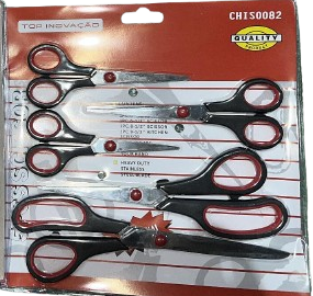 INFORMAÇÕES TÉCNICAS : Kit com 5 tesouras de tamanho diferentes, pontudas Universal.