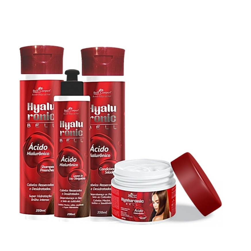 O kit Hyaluronic da Bell Corpus Cosméticos é uma linha de produtos especialmente formulada para cabelos ressecados e desidratados. A fórmula é enriquecida com ácido hialurônico, proporcionando uma super hidratação aos fios. Ao utilizar o kit, você pode esperar resultados como brilho intenso, cabelos macios, soltos e saudáveis. O ácido hialurônico, conhecido por suas propriedades hidratantes, trabalha para reter a umidade nos fios, combatendo o ressecamento e revitalizando a saúde capilar. A combinação de ingredientes no kit busca oferecer uma experiência completa de cuidado capilar, deixando seus cabelos com uma aparência radiante e bem nutrida.Produto notificado pela ANVISA.Produto a pronta entrega. Envio imediato.Empacotamento: O produto é lacrado direto da indústria reforçado com fita adesiva para suportar o transporte sem vazamento, empacotada e reforçada com caixa de papelão para que seu pacote chegue intacto pronto para uso ou revenda.Seu pedido contém:1 Shampoo 380 ml1 Condicionador 380 ml1 Máscara 500 g1 Leave-in 200 ml