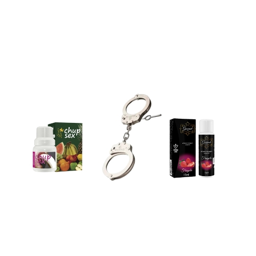 Kit Erótico C/3 Algema + Chup Sex + Gel Gourmet Sexy Segred Love